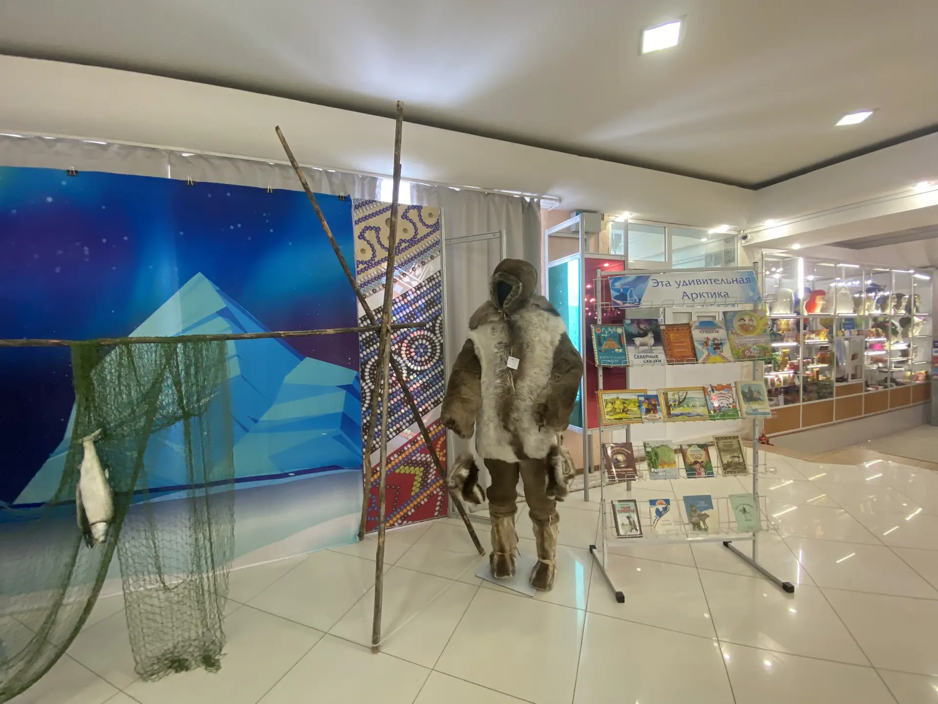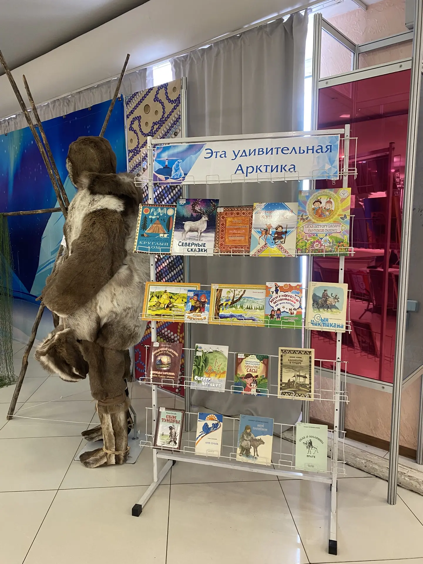 Книжная выставка была представлена в ходе VIII Межрегиональной выставки-ярмарки декоративно-прикладного искусства, народных художественных ремесел и промыслов народов Севера «Мир Арктики – 2026».